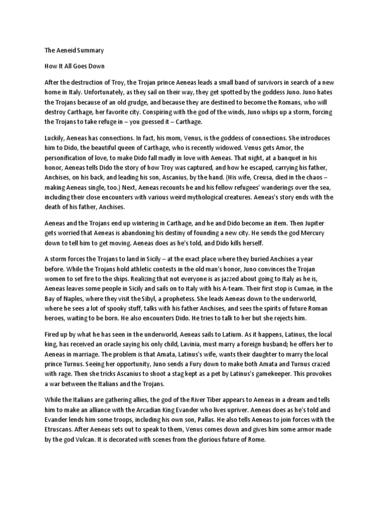 Get free access to the library by create an account fast download and ads free. Aeneid Summary Book I. Dido Carthages founder and queen.