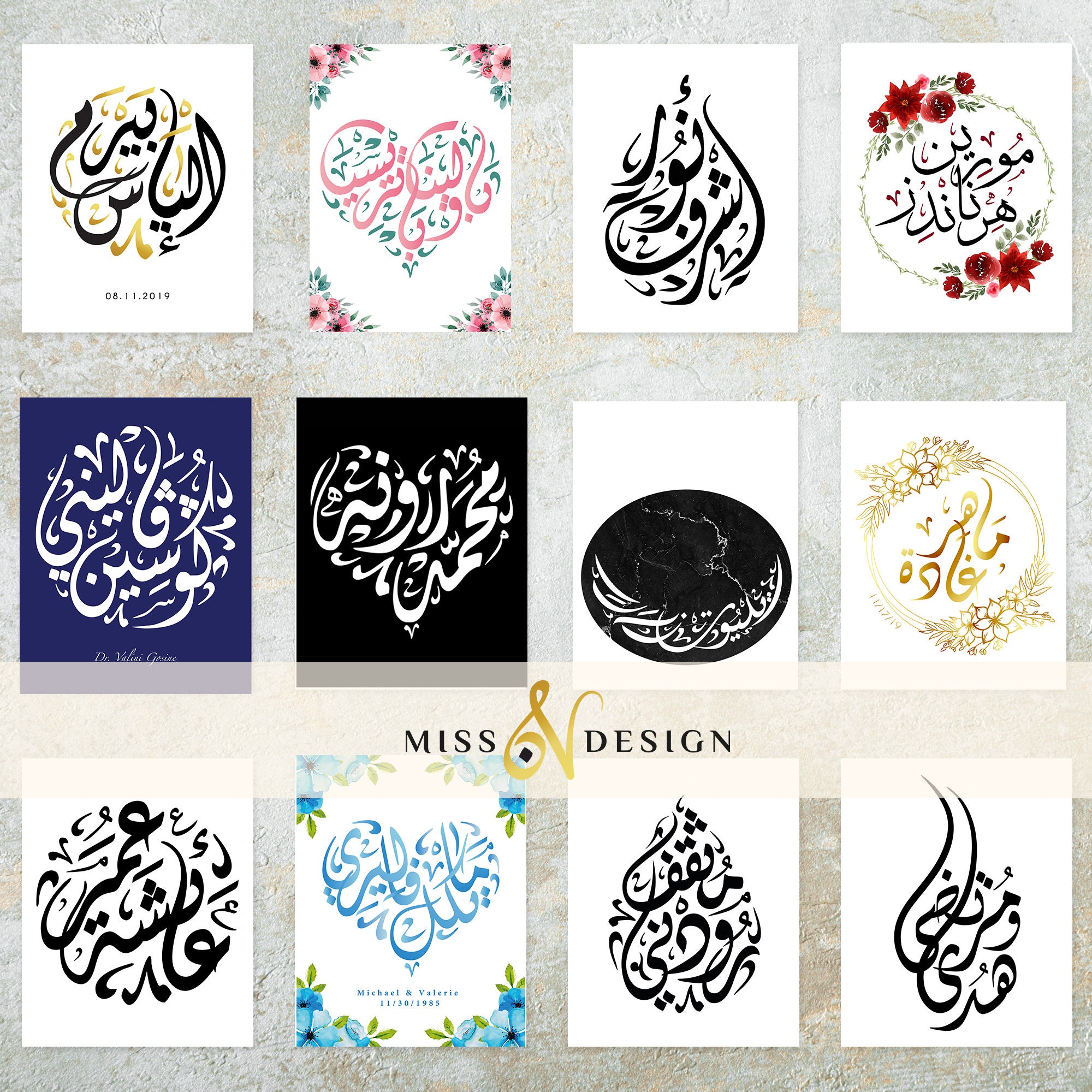 Custom Arabic Calligraphy Couples Names Printable Wall Art Etsy